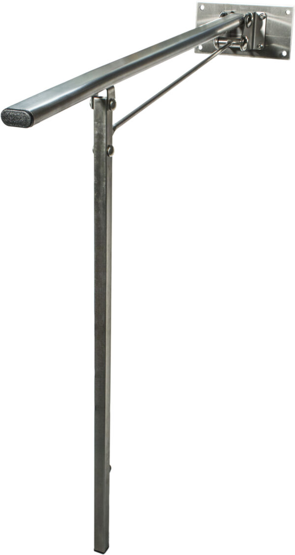Rostfritt Toalettarmstöd med stödben, uppfällbart, H=786, UTSP=784